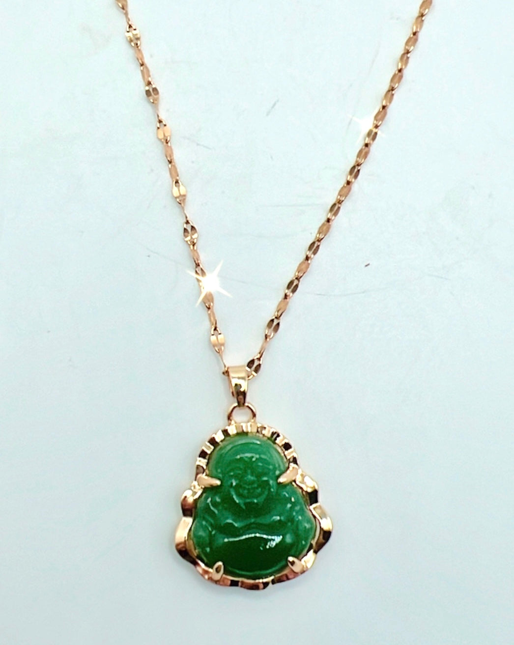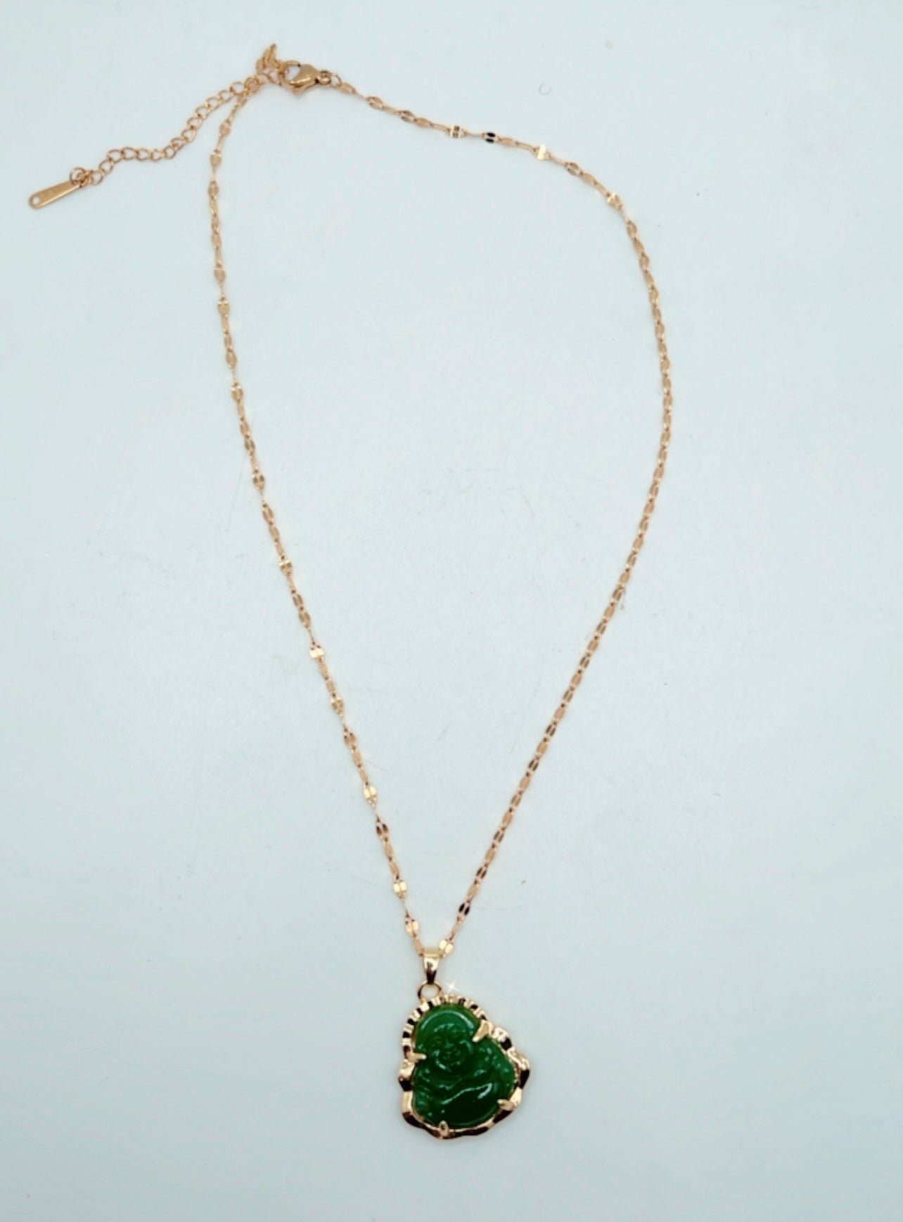 GREEN AVENTURINE BUDDHA NECKLACE- happiness, wealth good luck, prosperity